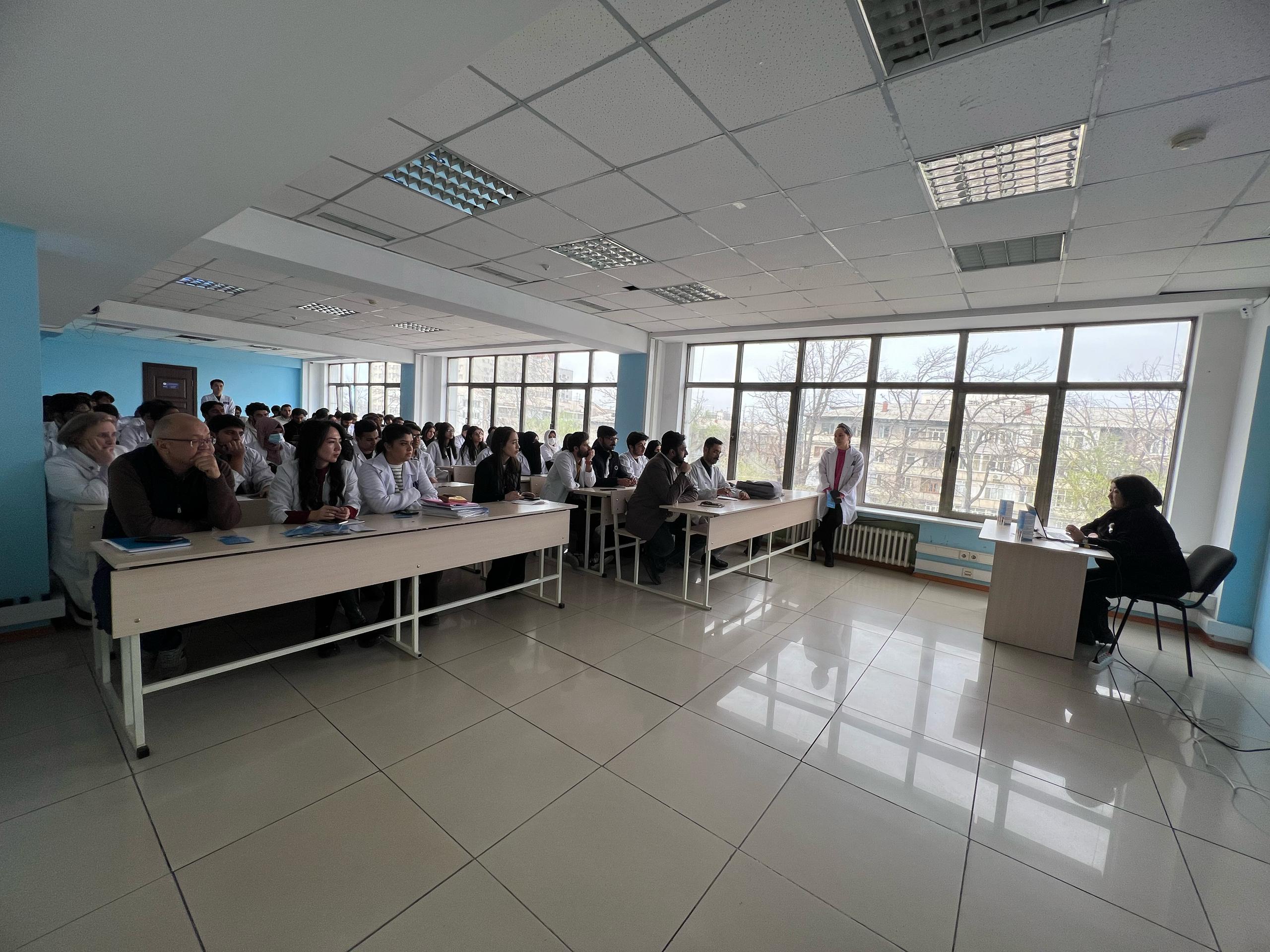 On March 26, 2025 in the large lecture hall of the educational institution “Royal Metropolitan University” was held a meeting of students and teachers with specialists of BTU FOMS . Asanbekova Gulmira Sarmanovna and Gulmira Kydyralievna Cherikova were the lecturers. Specialists of BTU FOMS provided full information on the State Guarantees Program, the benefits of the FOMS policy and the work of the hotline FOMS 113. The meeting also discussed issues related to joint work on informing students about health insurance.