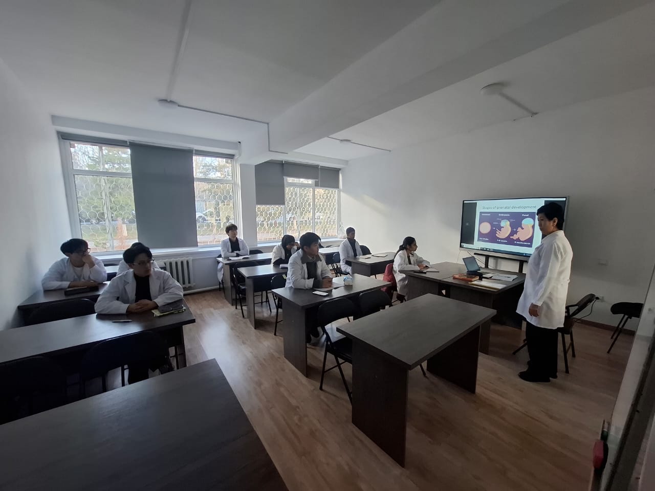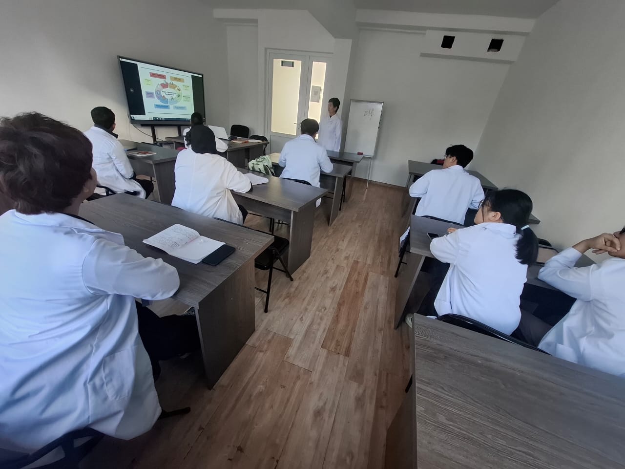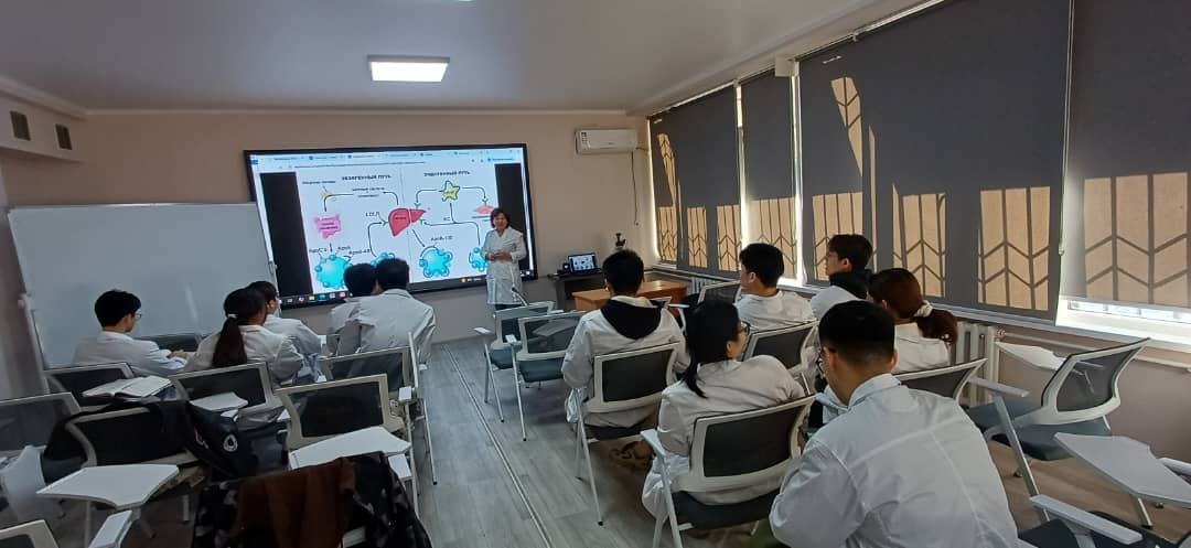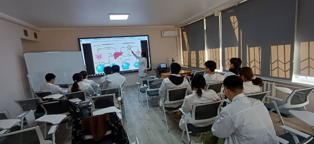 As part of the agreement, KSU by I. Arabayev hosted guest lectures and practice classes by Jalilova Ainagul Abdisalanovna – PhD in Biology, Head of the Department of Morphological and Fundamental Disciplines, and Associate Professor of the same department Kadyrkulova Saltanat Orozkulovna gave lectures and practice classes on Medical biology, General and clinical biochemistry for first-year students of the International Medical Faculty of KSU by I. Arabayev.