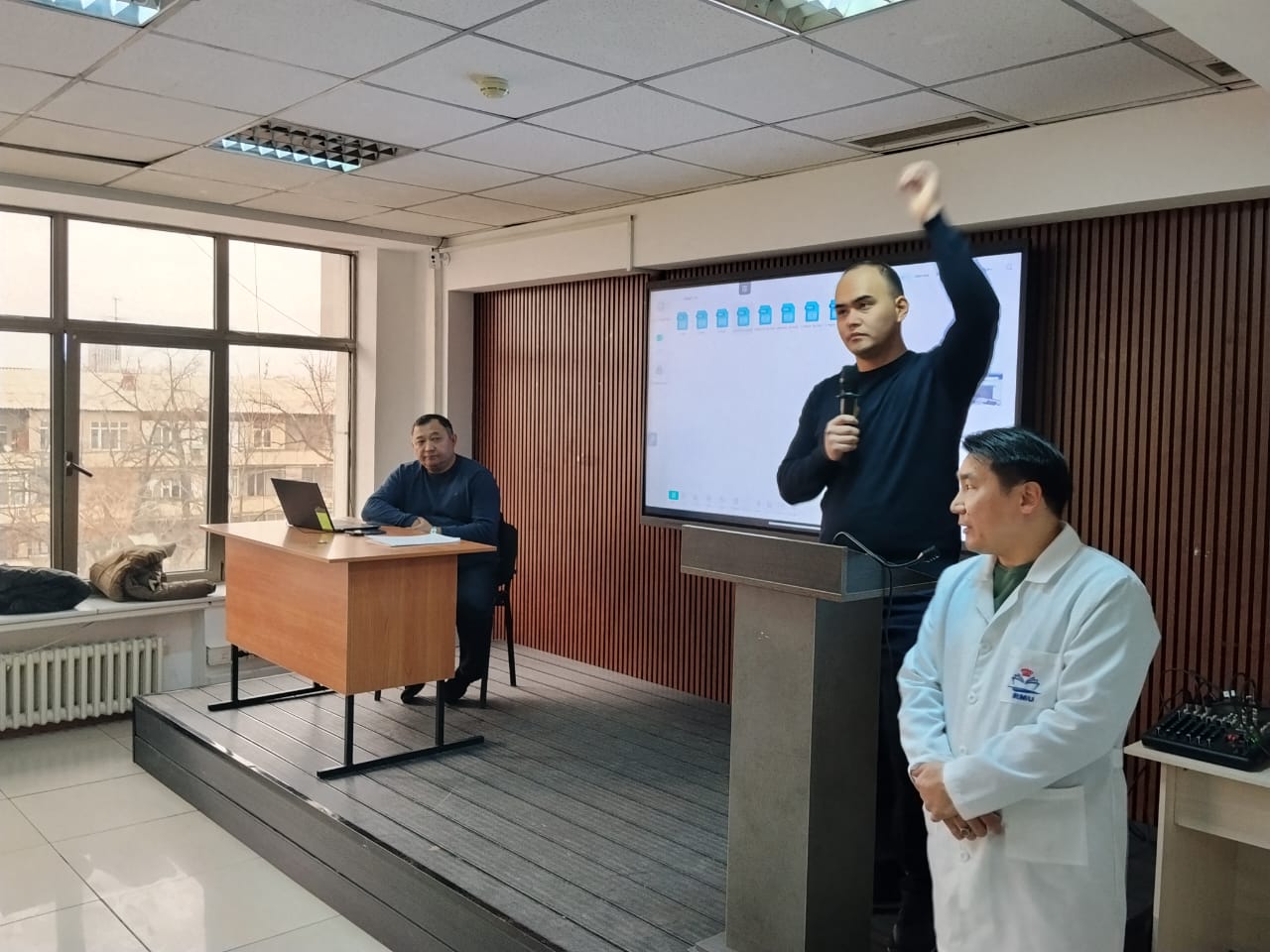 Police major Yu.A. Abdumannapov presented a short video clip to the students and faculty on tolerance and the inadmissibility of unfounded accusations based on religion or nationality. He emphasized that the Kyrgyz Republic respects and guarantees all individuals the rights and freedoms enshrined in the Constitution of the Kyrgyz Republic. Any form of discrimination or infringement of rights based on religion, nationality, or citizenship is unacceptable in the republic, and internal affairs agencies take measures to prevent such violations if they are detected.
