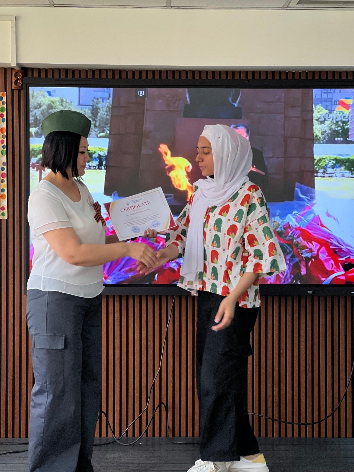 On the eve of the great holiday – Victory Day – the educational institution “Royal Metropolitan University” held a solemn event dedicated to the 80th anniversary of the victory in the Great Patriotic War. Students and faculty gathered to honour the memory of the heroes who defended freedom and peaceful skies above their heads. Students prepared a literary and musical composition with reading poems and singing war songs. Especially heartfelt were the songs “Estelik”, “Katyusha” and “Victory Day”, which were taken up by the whole hall.