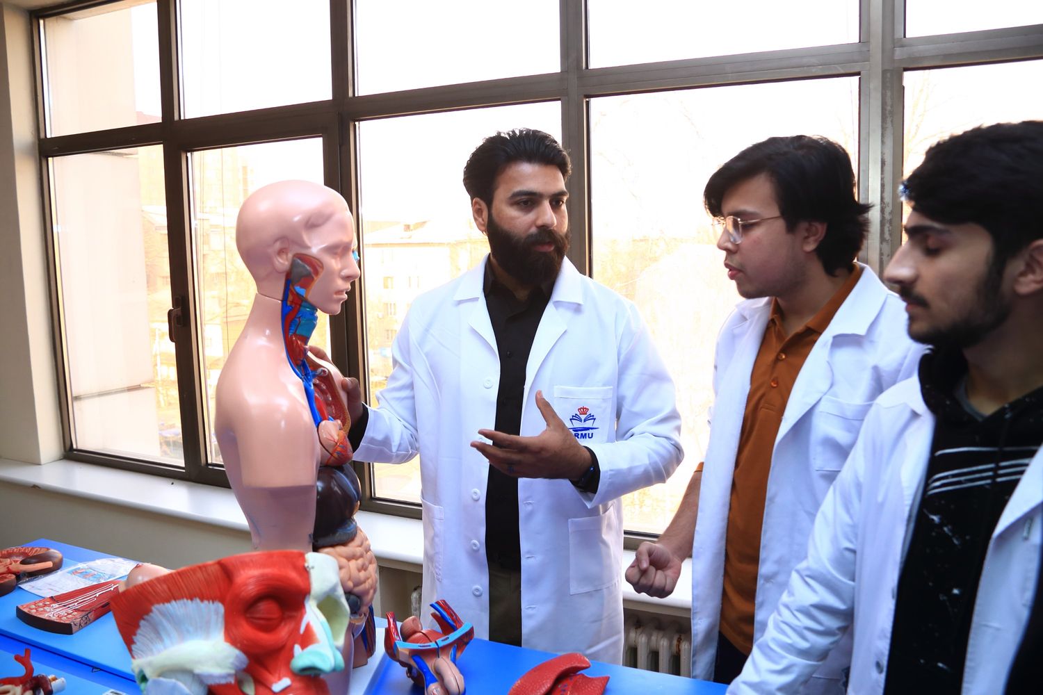 Анатомический зал кафедры морфологических и фундаментальных дисциплин является одним из вспомогательных элементов подготовки высококвалифицированных врачей, базой для систематической, самостоятельной работы студентов и позволяет детально представить строение тела человека, его изменчивость, развитие и аномалии развития, фило-и онтогенез, а также освещает историю анатомии.